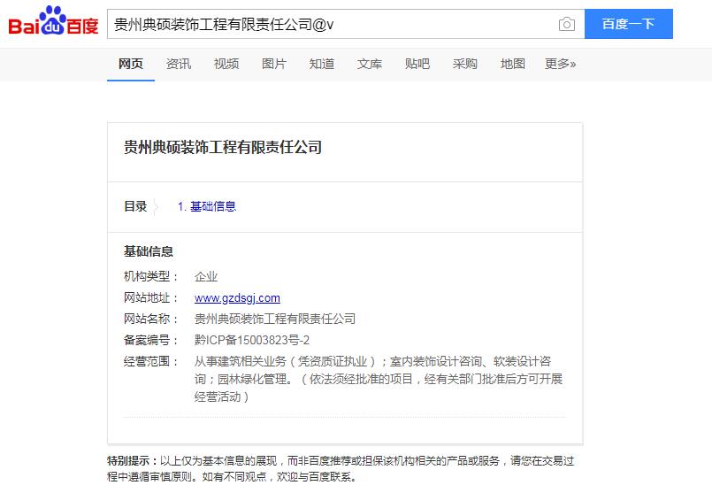 ![]() 贵州典硕装饰工程有限责任公司与贵州百度公司成功签约百度搜索推广服务2020-5-14 【了解详细】 | |||