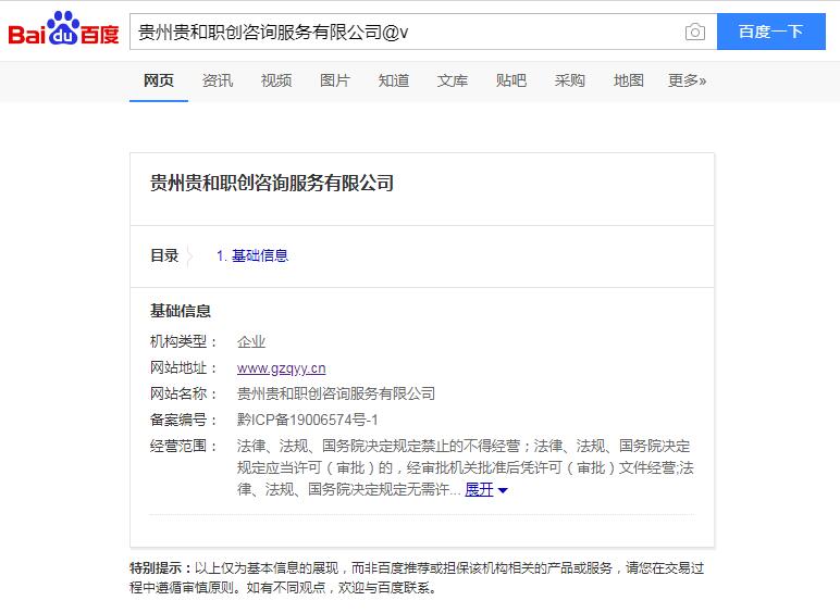 ![]() 贵州贵和职创咨询服务有限公司与贵州百度公司成功签约百度推广服务!!!2020-5-22 【了解详细】 | |||