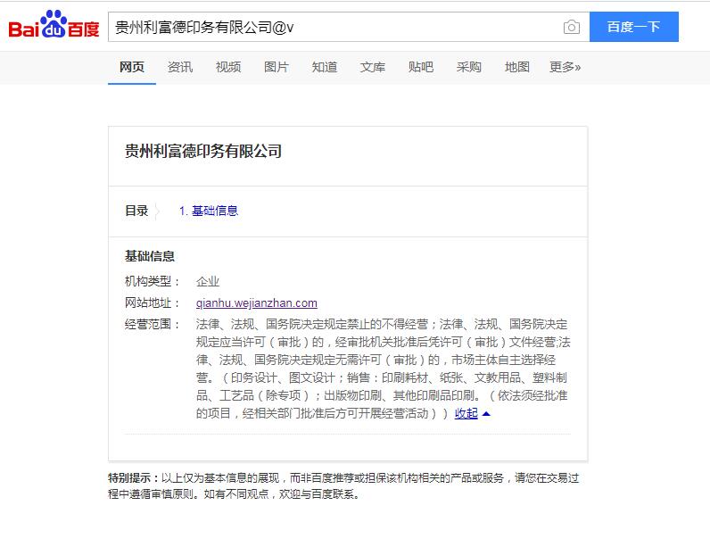 ![]() 贵州利富德印务有限公司与贵州百度公司签约合作百度搜索推广服务!!!2020-6-12 【了解详细】 | |||
